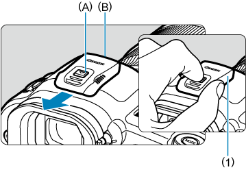 - Uklonite poklopac stopice (1) tako što ćete prstom pritisnuti deo označen kao (A) na slici kao što je prikazano. Ako je uklanjanje otežano, pokušajte prstom da skinete poklopac na delu (B).