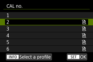 Da biste registrovali podatke o kalibraciji za druge korisnike ili u slučaju naočara i kontaktnih sočiva, izaberite dostupan broj kome želite da dodelite podatke od brojeva označenih kao [] na ekranu [CAL no.], a zatim izvršite kalibraciju.
