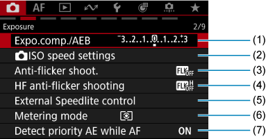 - (1) Korekcija ekspozicije/Serijsko snimanje sa AE (AEB režim)