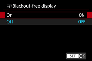 Ova opcija prikaza olakšava snimanje objekata koji se brzo kreću, eliminišući trenutni početni nedostatak slika u tražilu (zamračenje) pri rafalnom snimanju.