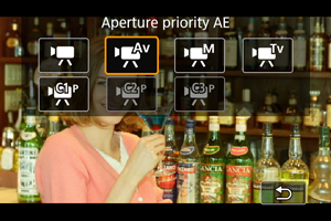 U [] režimu možete ručno podesiti vrednost blende po želji kada snimate video zapise. ISO brzina i brzina zatvarača se podešavaju automatski u skladu sa osvetljenošću kako bi se postigla standardna ekspozicija.