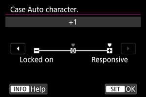 Fotoaparat će nastaviti da pokušava da izoštrava objekat, čak i ako se neželjeni objekti pojave ispod AF tačaka ili se objekti udalje od AF tačaka. Sa postavkom –2, fotoaparat će duže nastaviti da prati ciljani objekat nego sa postavkom –1.