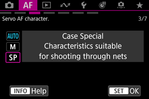 Podesite osetljivost servo autofokusa pri praćenju objekata, odnosno podesite kako će se fokus ponašati ako objekat naglo i drastično promeni brzinu kretanja, kao npr. kod objekata koji naglo kreću ili se zaustavljaju.