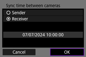 Sinhronizujte vreme na fotoaparatu otpremniku i fotoaparatima prijemnicima na sledeći način.