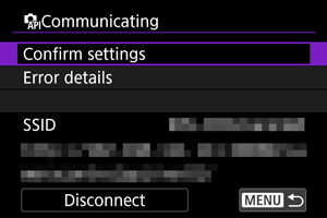 - Prikaz gore navedenog ekrana na fotoaparatu ukazuje da je veza uspostavljena.