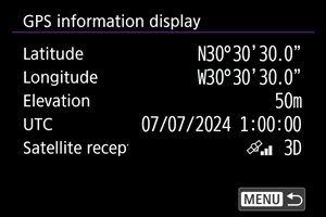Možete koristiti GPS funkcije na fotoaparatu da biste slikama dodali geo oznake, podesili vreme itd. Fotoaparat može da prima signal sa GPS satelita (SAD), GLONASS satelita (Rusija) i Quasi-Zenith satelitskog sistema “Michibiki” (Japan).