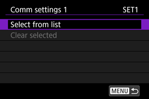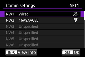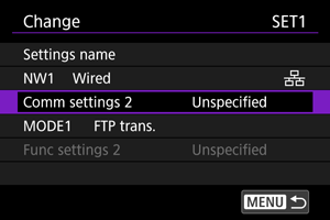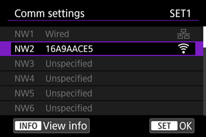 - Ako su Wi-Fi podešavanja već registrovana u okviru [Comm settings 1], možete odabrati Wi-Fi podešavanja za [Comm settings 2].