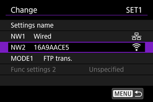 - Odaberite Wi-Fi podešavanja ako su podešavanja žičane LAN veze već registrovana u okviru [Comm settings 1], ili odaberite podešavanja žičane LAN veze ako su Wi-Fi podešavanja već registrovana u okviru [Comm settings 1].