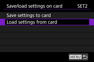 Odaberite [Load settings from card].