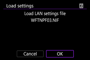 - Čak i ako pokušate da sačuvate više od 41 postavke na kartici ubačenoj u fotoaparat preko računara ili drugog uređaja, samo 40 postavki će biti prikazano na ekranu sa postavkama za učitavanje na fotoaparatu. Da biste učitali više od 40 postavki, najpre učitajte 40 postavki sa jedne kartice, a zatim učitajte preostale postavke sa druge kartice.