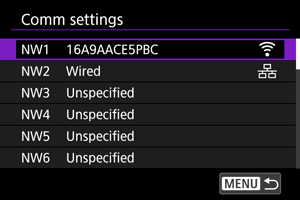 Odaberite [Select from list] da biste izlistali postavke za komunikaciju sačuvane na fotoaparatu. Odaberite postavke za komunikaciju koje želite da koristite.