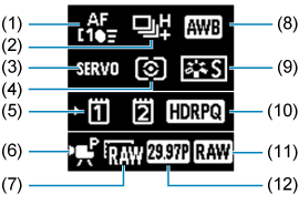 - Kod slika snimljenih u RAW+JPEG/HEIF režimu označava veličinu RAW datoteke.