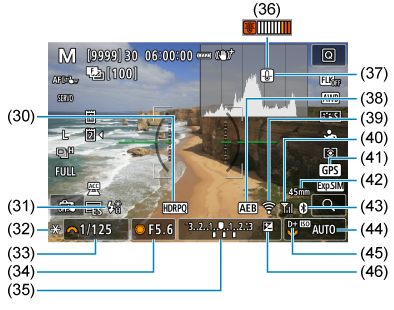 - (35) Indikator nivoa ekspozicije (iznos korekcije ekspozicije/AEB raspon)