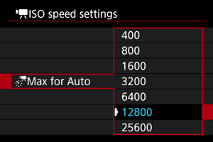 - Takođe može biti podešeno preko [ISO speed] u okviru [
