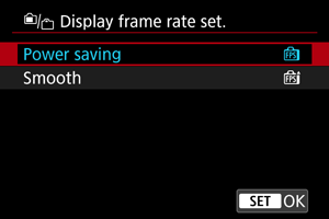 Možete podesiti brzinu kadrova za ekran snimanja prilikom snimanja fotografija. Odaberite da li želite da uštedite energiju baterije ili da koristite visoku brzinu kadrova za prikaz.