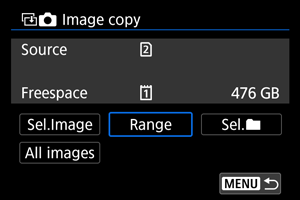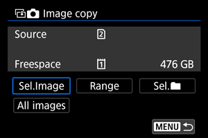 - Ako ste odabrali [Sel.Image], ne možete odjednom kopirati slike iz više direktorijuma. Odaberite slike koje želite da kopirate iz samo jednog direktorijuma.