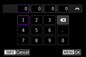 Odaberite metodu podešavanja IP adrese, a zatim podesite IP adresu na fotoaparatu. Kada se koristi IPv6, fotoaparat se povezuje jedino preko IPv6. IPv4 veze nisu moguće.