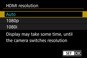 Slike će biti prikazane u rezoluciji od 1080p. Odaberite ovu opciju ako želite da izbegnete prikazivanje slika sa odlaganjem i druge probleme pri prebacivanju rezolucije na fotoaparatu.