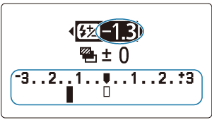 Blixtstyrkan kan justeras precis som exponeringskompensationen. Mängden blixtexponeringskompensation kan ställas in i ett intervall om ±3 steg, i ökningar om 1/3 steg.