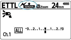 - Blixtens täckning för sändaren och mottagaren är satt till 24 mm. Du kan även ställa in blixtens täckning manuellt.