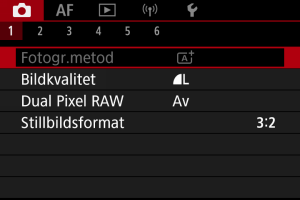 Nedtonade menyalternativ kan inte väljas. Menyalternativet är nedtonat om en annan funktionsinställning åsidosätter det.
