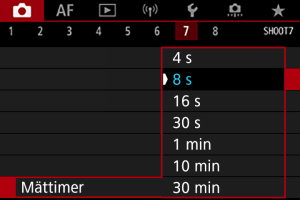 Du kan välja hur länge mättimern pågår (vilket avgör exponeringvärdets/AE-låsets längd) efter att den utlöses av en handling, till exempel att avtryckaren trycks ner halvvägs.