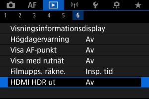 - Snabbkontroll för RAW-behandling av visade bilder rekommenderas om du bearbetar RAW-bilder medan du tittar på HDMI HDR ut.