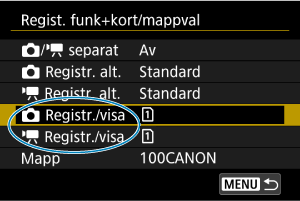 Välj kortet för inspelning och uppspelning med [ Registr. alt.]/[
