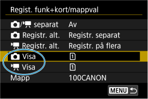 Välj kortet för uppspelning med [ Registr. alt.] inställt på [Registr. separat] eller [Registr. på flera] eller med [