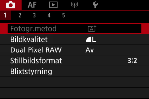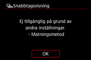 Nedtonade menyalternativ kan inte väljas. Menyalternativet är nedtonat om en annan funktionsinställning åsidosätter det.