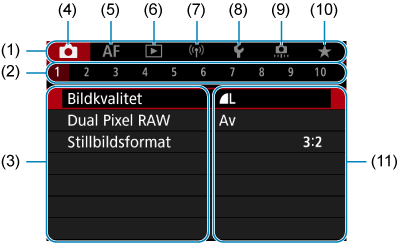 - Följande beskrivning av olika menyfunktioner utgår ifrån att du har tryckt på