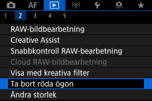 Korrigerar automatiskt relevanta delar av bilder med röda ögon. Bilden kan sparas som en separat fil.