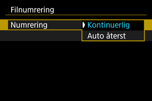 Starta om filnumrering från 0001 efter att ha bytt kort eller skapat mappar