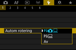 1. Välj [Inställningar: Autom rotering] ().