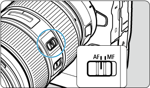 Ställ in objektivets omkopplare för fokuseringsmetod på
