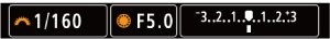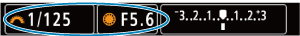 - Kontrollera indikatorn för exponeringsnivå och ställ in slutartid och bländarvärde.
