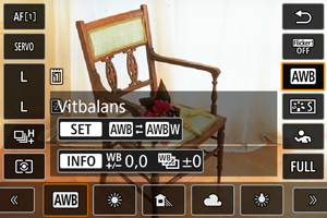 - För att fotografera med den registrerade egna vitbalansen ska du välja den före fotografering.