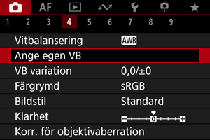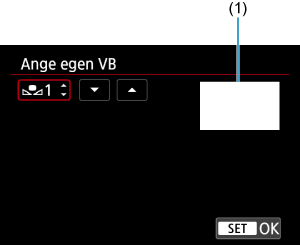 - På skärmen [Ange egen VB] väljer du numret för registrerad egen vitbalans.