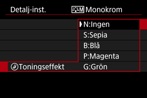 Du kan anpassa en bildstil genom att ändra standardinställningarna. Mer information om [Monokrom] finns i Monokrom inställning.