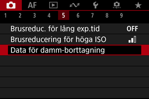 Data för dammborttagning som använts för att radera dammfläckar kan läggas till i bilder om sensorrengöring lämnar damm på sensorn. Data för dammborttagning används av Digital Photo Professional (EOS-programvara) för att automatiskt ta bort dammfläckar.