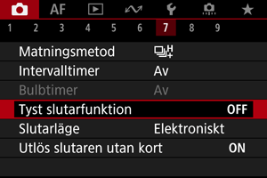 Inaktiverar avtryckarljud, funktionsljud och tändning och belysning av blixt och andra ljuskällor.