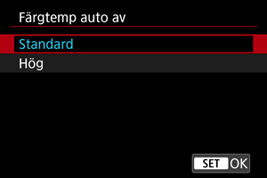 Ställ in till [Hög] för att reducera frekvens då kameran stängs av automatiskt på grund av hög korttemperatur.