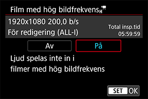 : Insp.storl. film] om du återställer den här inställningen till [Av].