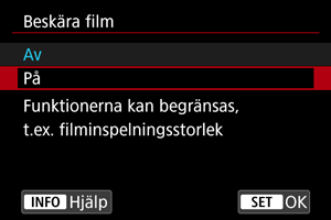 Spela in film med RF-S- eller EF-S-objektiv har samma effekt som den här funktionen för att beskära film.