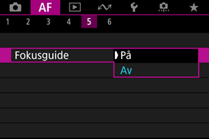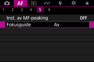 Att ställa in [: Fokusguide] till [På] tillhandahåller en styrram som visar vilken riktning man bör justera fokus och mängden justering som behövs. Du kan också använda Eye Control för att visa fokusguiden på din önskade position. Se Använda Eye Control för AF för mer information.