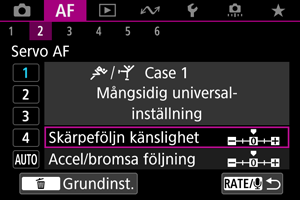 Skärpeföljningskänslighet och spårning av acceleration/retardation ställs in automatiskt.