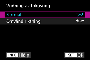 Du kan vända riktningen som fokuseringsringen på RF-objektivet roteras för att justera inställningarna.