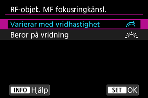 Du kan ställa in känsligheten för RF-objektivets fokuseringsring.