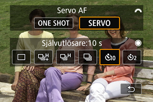 - Du kontrollerar funktionen genom att titta på självutlösarlampan, lyssna efter pipljud eller kontrollera nedräkningen i sekunder på skärmen.