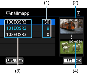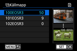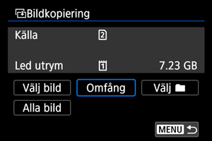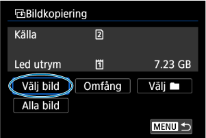 - Med [Välj bild] kan bilder i flera mappar inte kopieras samtidigt. Välj bilder som ska kopieras från en mapp i taget.